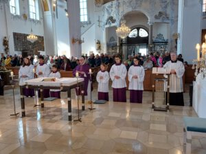 Am 5. Fastensonntag begeht die katholische Kirche den Misereor Sonntag zur Unterstützung der Kirchen in Afrika, Asien und Lateinamerika. Auch in der Wallfahrtskirche Herrgottsruh wurde die Fastenaktion 2026 begangen und das diesjährige Beispielland Kamerun in der Predigt vorgestellt. Musikalisch lag die Gestaltung des Gottesdienstes beim Gloria Chor der Wallfahrtskirche unter der Leitung von Vincent Semenou. Mit fröhlichen internationalen Gesängen sorgte der Chor in der Wallfahrtskirche für eine begeisterte Stimmung. Wallfahrtsdirektor Pater Hans-Joachim Winkens führte in das Thema und das Bei-spielland Kamerun ein. „Hier fängt Zukunft an“ heißt das diesjährige Motto, und es geht um die berufliche Ausbildung junger Menschen in Kamerun. Kamerun ist mit knapp 30 Millionen Menschen ein junges Land. Die schulische und berufliche Ausbildung junger Menschen ist schwierig. Denn Schulbildung ist teuer und die berufliche Ausbildung ist für viele junge Menschen nicht gesichert. Um die Not abzufedern und Chancen zu eröffnen, gibt es viele Projekte der Caritas, besonders in den großen Städten Douala (wirtschaftliches Zentrum mit 4 Millionen Einwohnern) und Yaoundé (Hauptstadt).